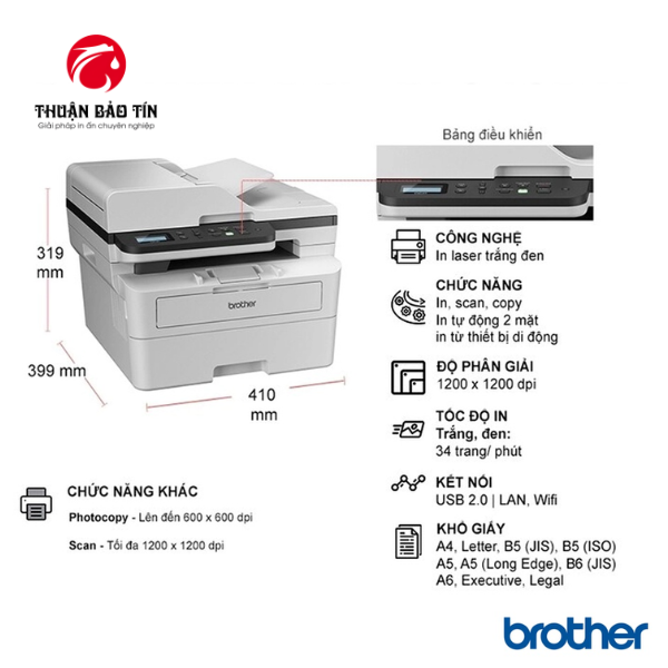 • Máy in Laser Brother DCP-B7640DW - In trắng đen đa năng, Wifi