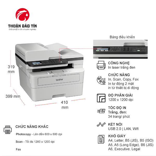Với nhiều năm kinh nghiệm trong lĩnh vực cung cấp thiết bị in ấn, Thuận Bảo Tín cam kết mang đến cho khách hàng máy in Brother MFC-B7810DW chính hãng, chất lượng đảm bảo cùng mức giá cạnh tranh. Chúng tôi không chỉ cung cấp sản phẩm mà còn tư vấn giải pháp in ấn phù hợp, giúp khách hàng tối ưu hiệu quả làm việc và chi phí vận hành. Liên hệ ngay Thuận Bảo Tín để được tư vấn và báo giá tốt nhất!